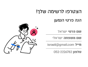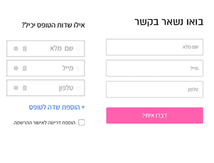 ליצירת קשראני רוצה לדבראנחנו זמינים בטלפון, במייל, בווטסאפ ובצ'אט ומאוד אוהבים לעזור. דברו איתנו, מחכים לכם